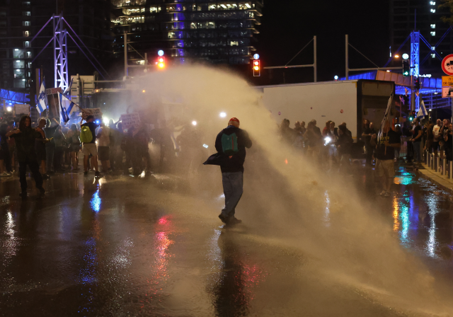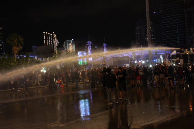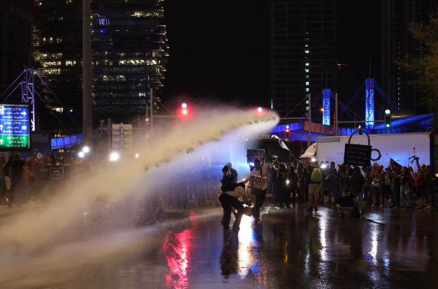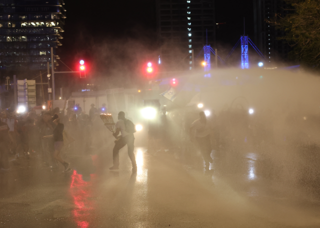 İsrail polisi, alana TOMA getirerek göstericilere su sıkarak müdahale etti, olaylar uzunca bir süre devam etti. İsrail polisi, en az üç göstericiyi gözaltına aldı. Gazze Şeridindeki İsrailli esirlerin yakınları ve onların destekçisi bir grup, polis bariyerlerini aşarak Tel Aviv’in ana arteri Ayalon Otoyolunu tek yönlü trafiğe kapattı. Esir yakınları, yerel basına yaptıkları açıklamada, halkı mücadelelerine katılmaya çağırarak “Netanyahu, siyasi gerekçelerle ülkeyi kurban ediyor ve yakınlarımızı ölüme gönderiyor.” ifadesini kullandı.