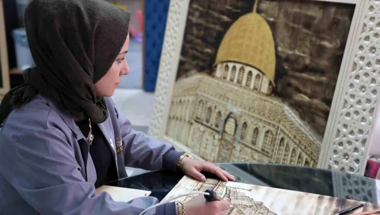 Çocukluk yıllarından beri Kudüs’ün kendisinde kutsal bir yer olduğunu anlatan güzel sanatlar eğitmeni Yasemin Akın, “Benim çocukluğumdan beri okulda öğretmenlerimizin anlattığından bildiğim kadarıyla aklımda, hayalimde, düşüncemde kalan kutsal bir yerdi. Benim için manevi değeri çok yüksek bir yerdi. O zamanlarda babama gidelim ziyaret edelim diye söylediğimde büyüyünce kendin çalışır gidersin İnşallah derdi. Ben de o zamanlardan çok niyetlendim, çok istedim. Gitmek istediğim aşamada da savaş çıktığı için gidemedim. Bu hayalimi ahşap yakma sanatına çevirdim. Yakarak sesimi duyurmak ve yakarak uzun süreli bir hatırası kalsın istedim. Çok sevdiğim değer verdiğim bir şehirdir” dedi.