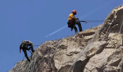 Gümüşhane-Kürtün Karayolu’nda Dağ ve Yamaçlar Çelik Ağlarla Kafese Alınıyor